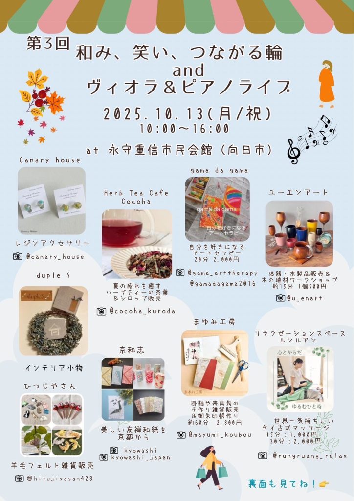 は向日市永守重信市民会館にて「和み、笑い、つながる輪」マルシェ出店!