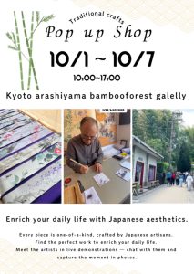京和志は10/1(水)~10/7(火)まで、京都は嵐山の竹林の小径入口にあるギャラリーに出展いたします。